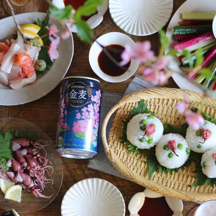 ・金麦のパッケージを入れて、お花見わっぱ弁当や手まり寿司などの春らしい食事や、ピクニックやおうち花見といった春を感じるシーンの食事と金麦と一緒にインスタグラム投稿してくださる方