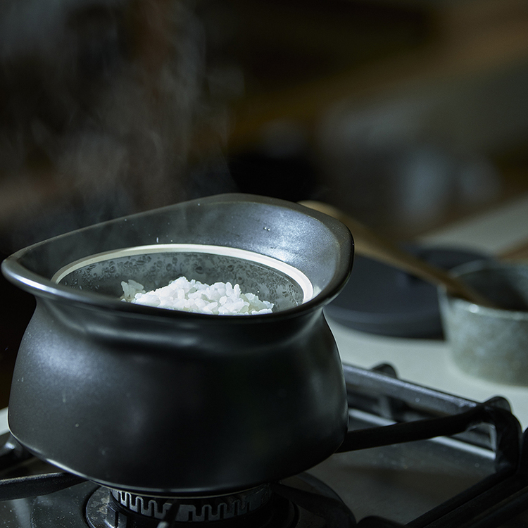 三重県四日市の伝統工芸である「萬古焼(ばんこやき)」で特殊な羽釜形状による二重構造により、鍋の中でまんべんなく熱が対流し、お米本来の旨味をしっかり引き出してくれる「ベストポット」。