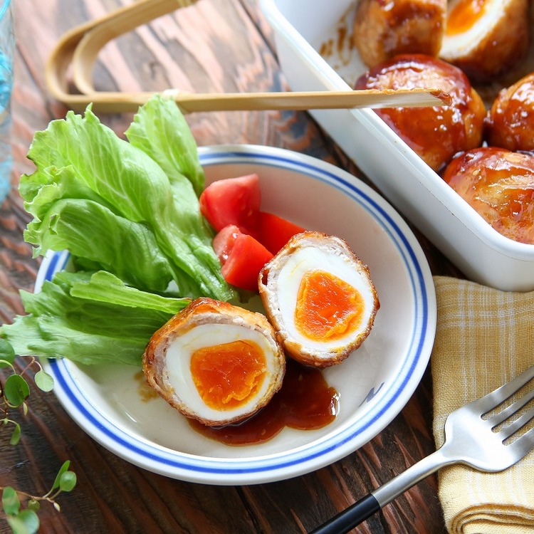 焼肉のタレで食べ応え抜群「肉巻き半熟卵」