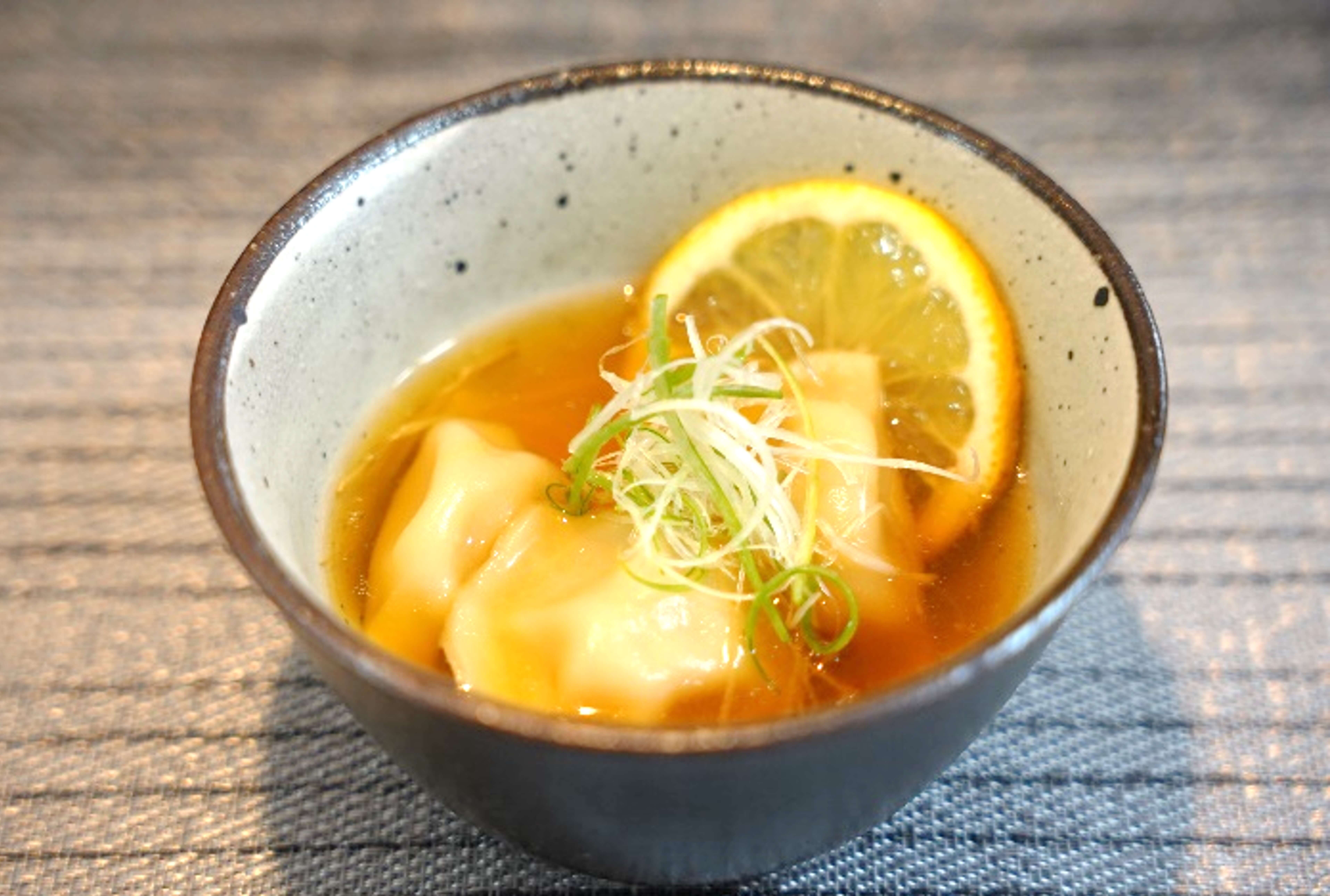 1. お茶に鶏ガラスープを少量いれ沸騰させ、餃子を時間通り茹でる。