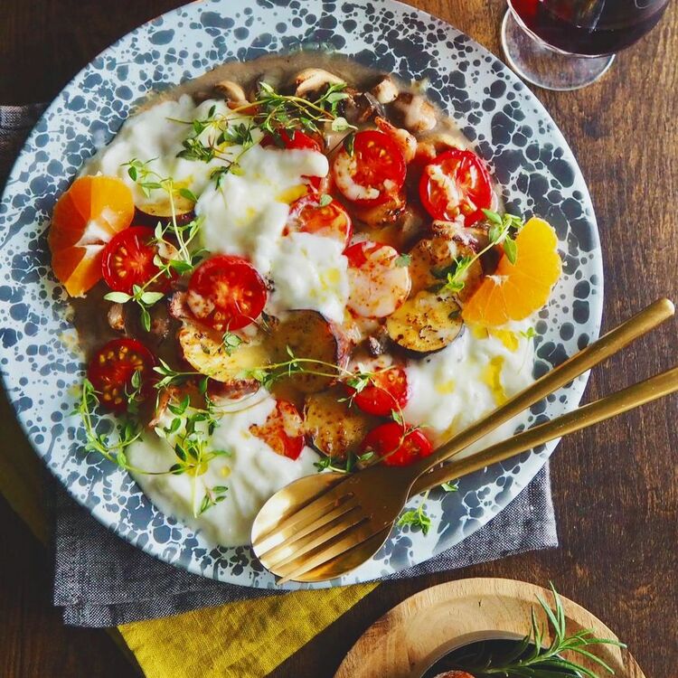 @nicolalala68さんは、グラタン風のホットサラダにブッラータをたっぷりとのせて。余熱でとろ~りとなったブッラータがたまりません!