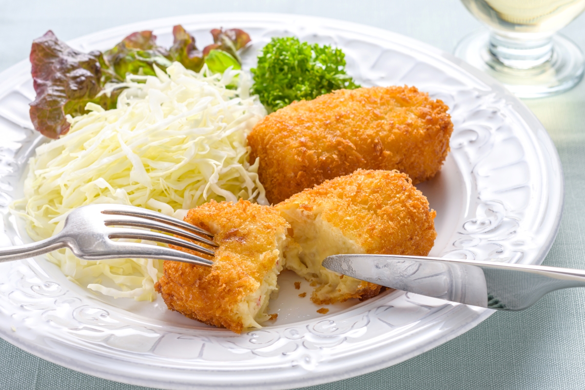 ホワイトソースに豆乳ソフトを使って作る、クリーミーなカニクリームコロッケです。