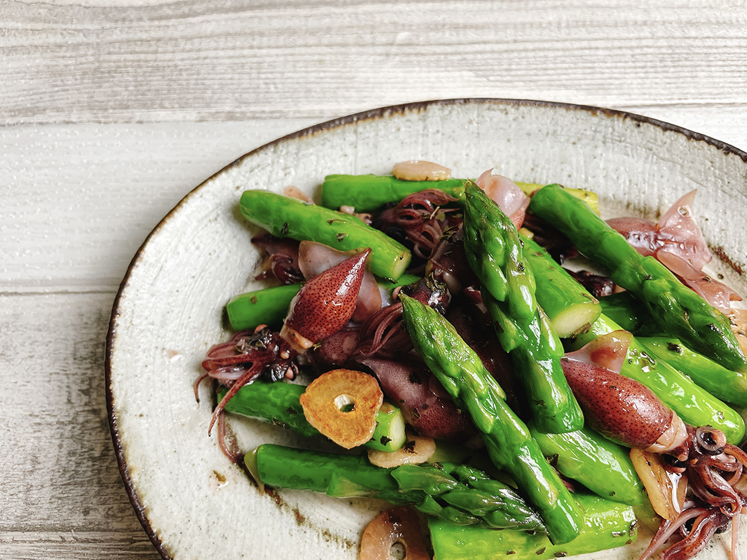 そんなときにおすすめなのが、気血と潤いをしっかりと補える「ほたるいかとアスパラのにんにく炒め」。旬の旨味がギューンと詰まった一品は、生理でなくとも前述の症状がある気血不足のぐったりさんにおすすめです。
