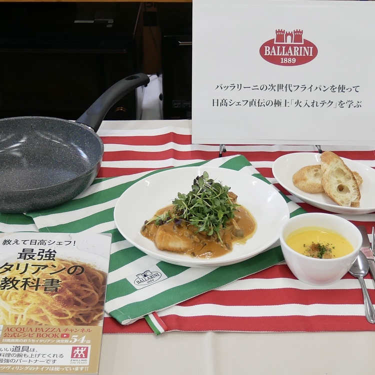 先行体験イベントでは、リストランテ・アクアパッツア 日髙良実シェフによるデモンストレーションが行われ、お肉をじっくり火入れして焼き上げるレシピが公開されました。