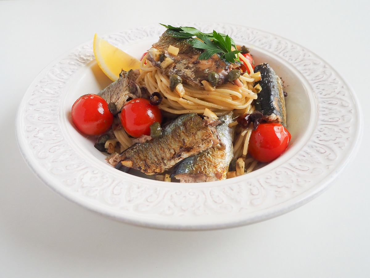 こんがりとした焼き目が食欲をそそる、秋刀魚のオイルパスタ。