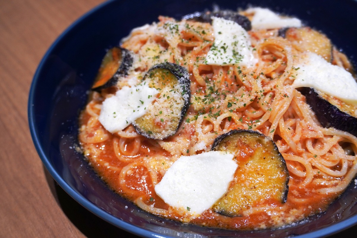 定番のなすのトマトソースパスタに、とろ~りとろけるモッツァレラチーズを合わせれば、ごちそう級の一皿に!