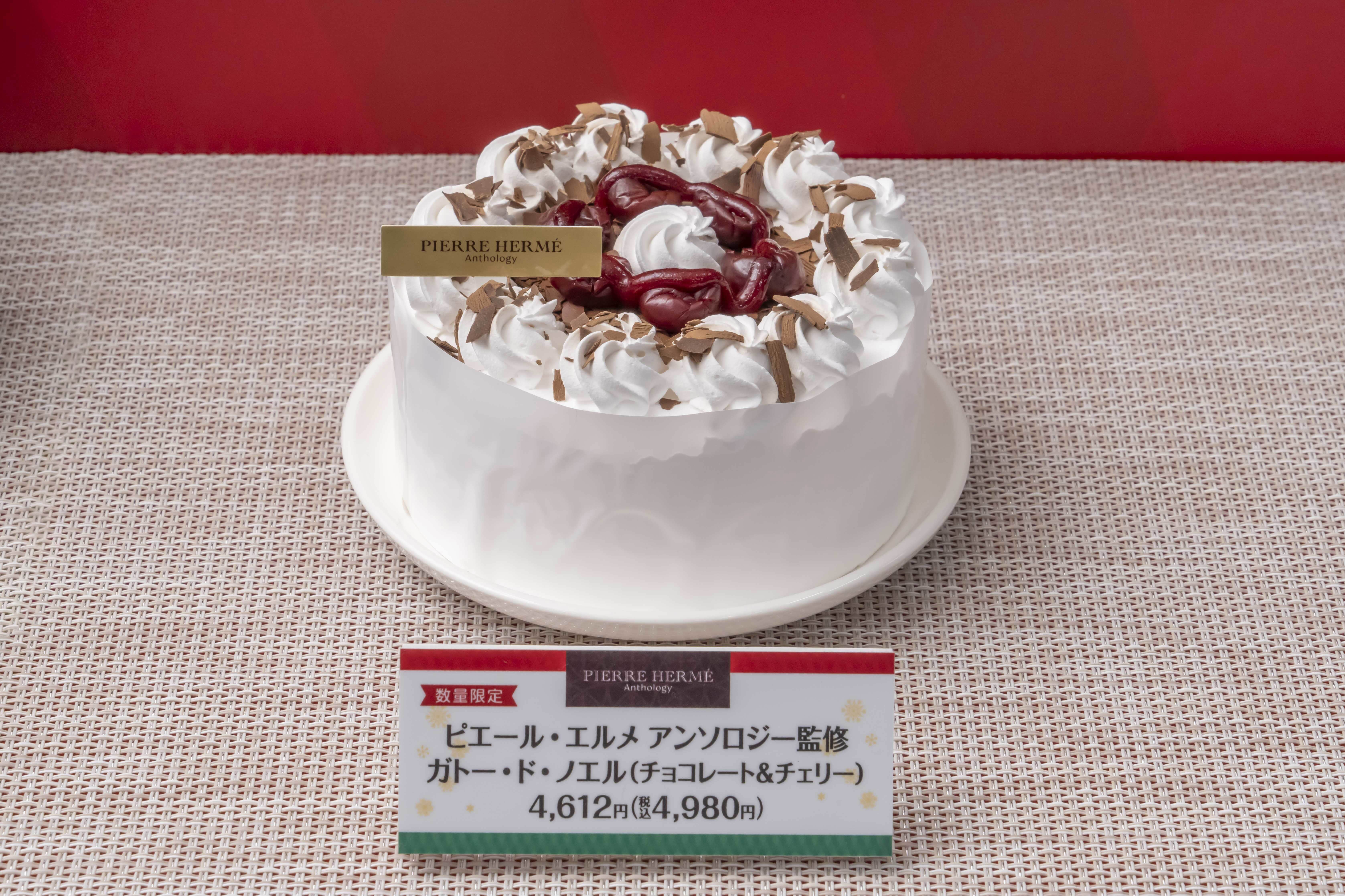 ピエール・エルメアンソロジー監修「ガトー・ド・ノエル」は、濃厚なチョコレート生地にバニラ香るクリームをあわせ、甘酸っぱいチェリーで仕上げました。
