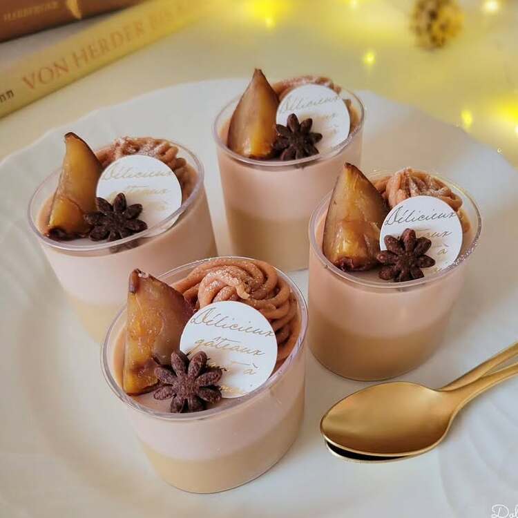 ちょっぴり大人なパンナコッタはいかがですか? キリッと苦みの効いたコーヒーパンナコッタと、優しい甘さの栗のパンナコッタの二層仕立てです。ぷるんとろ〜りの異なる食感と味わいを楽しめます。マロンクリームと栗の渋皮煮をトッピングすれば、おもてなしにもぴったりの本格デザートに!