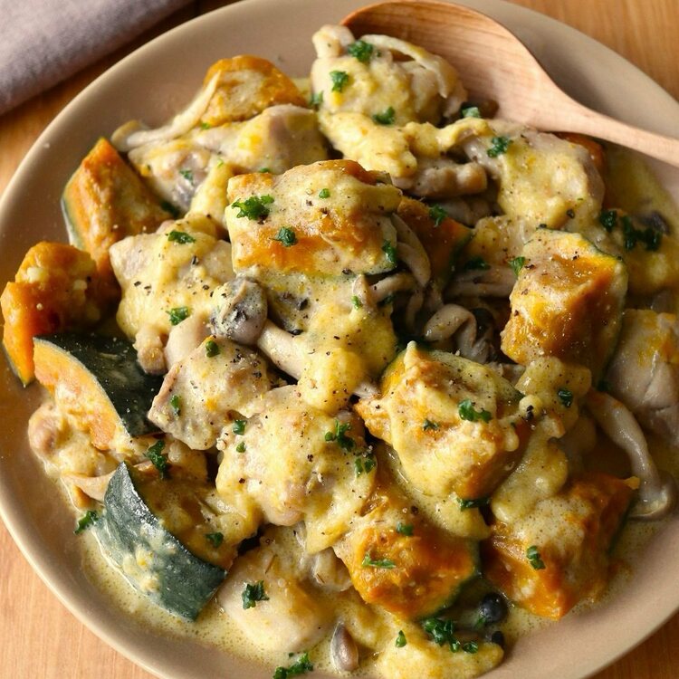 鶏肉とかぼちゃの味噌クリーム煮