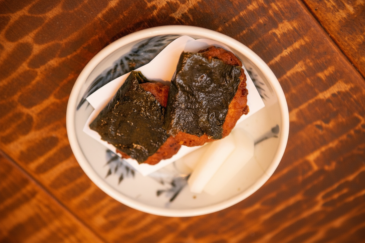 天ぷら以外の揚げ物でいうと「桜海老と蕎麦粉の磯部揚げ」も太白ごま油との相性が良いです。揚げたてがおいしいので、仕込みの段階で小さな桜海老入りの蕎麦がきを作っておいて、注文が入ってから揚げています。