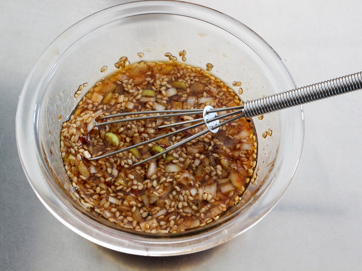 5. 蒸しあがったら混ぜ合わせたAをかける。
