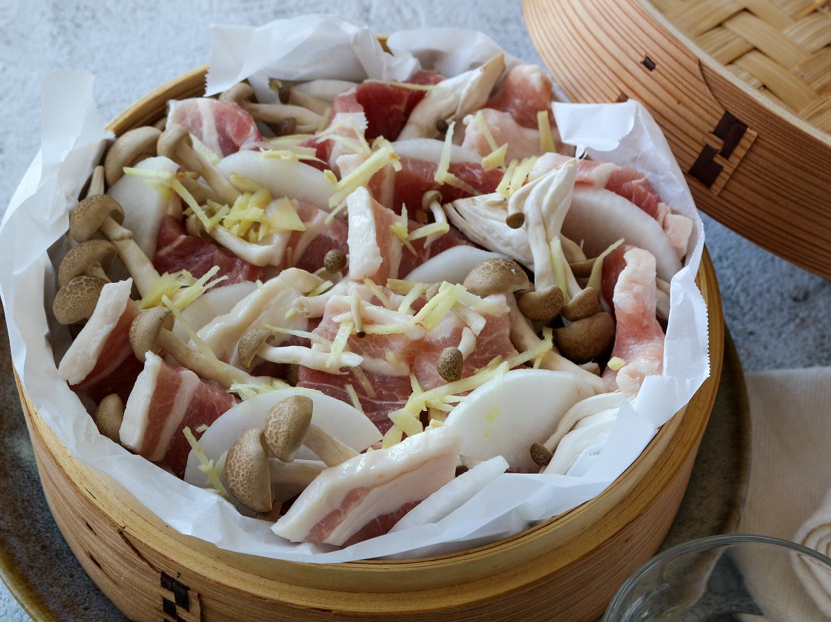 豚バラと鍋野菜の中華風蒸籠蒸し