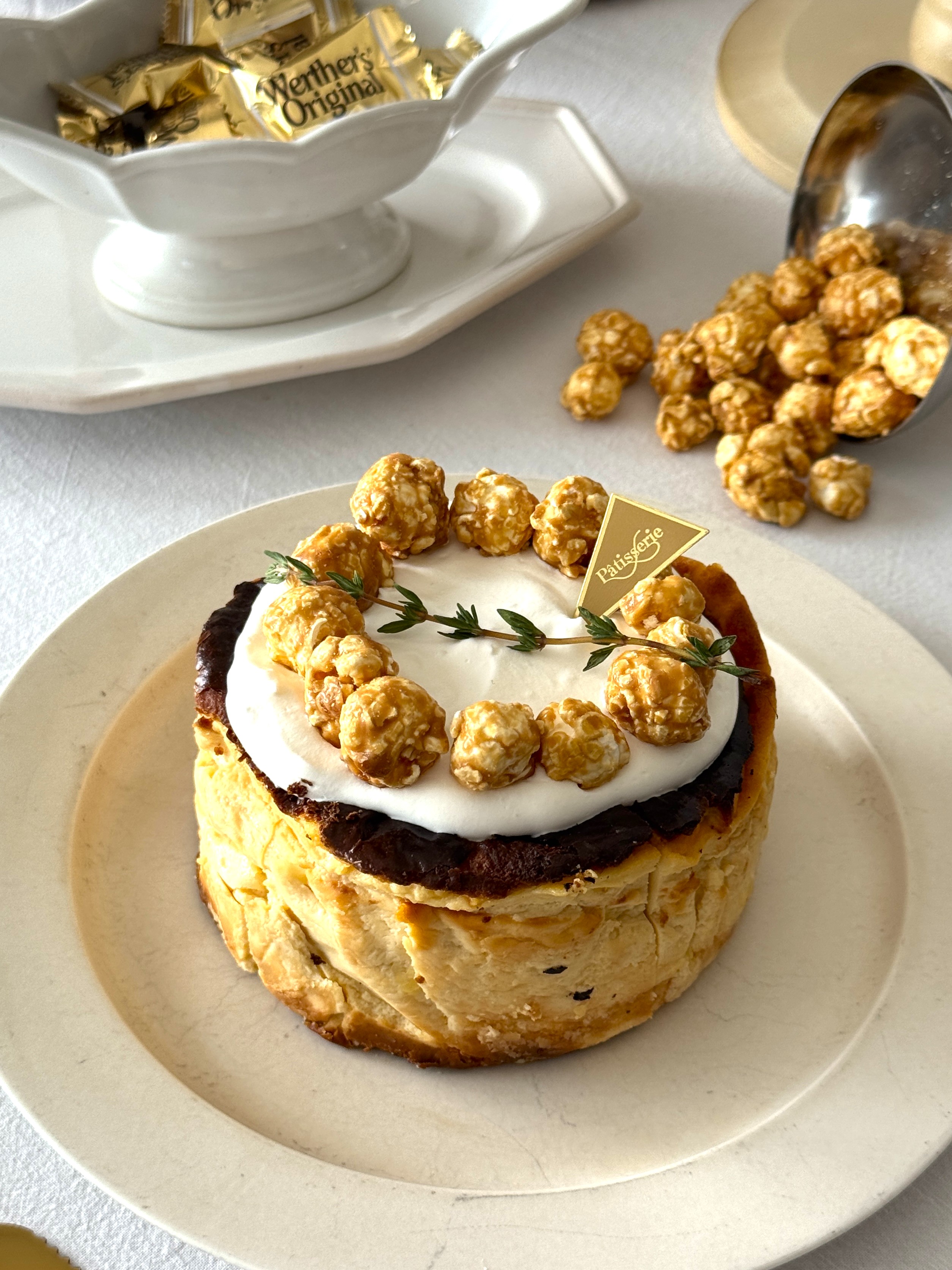 twins cooking さん(@twins_cooking_)は、「ヴェルタースオリジナル」のキャラメルキャンディを使うことで、手軽においしいキャラメルバスクチーズケーキが作れたそう。