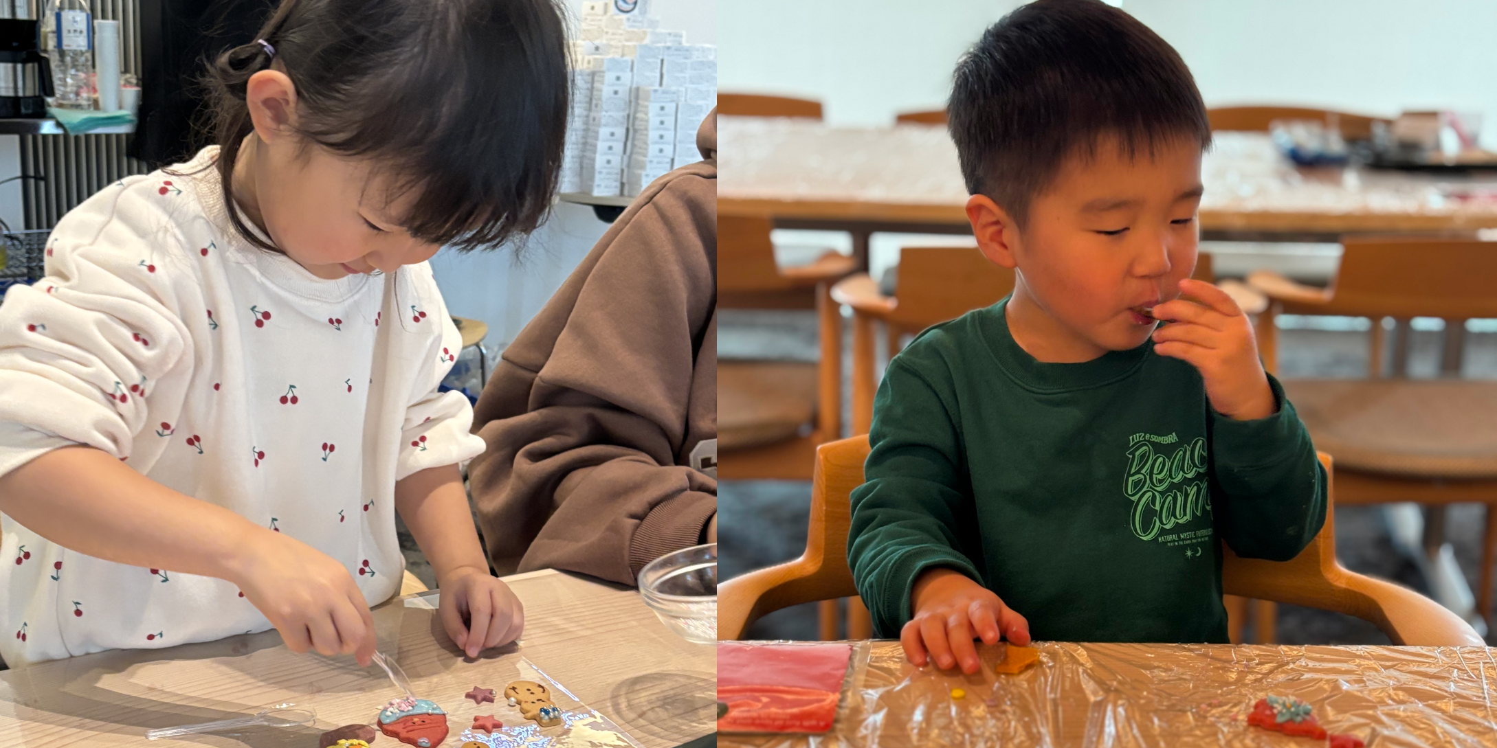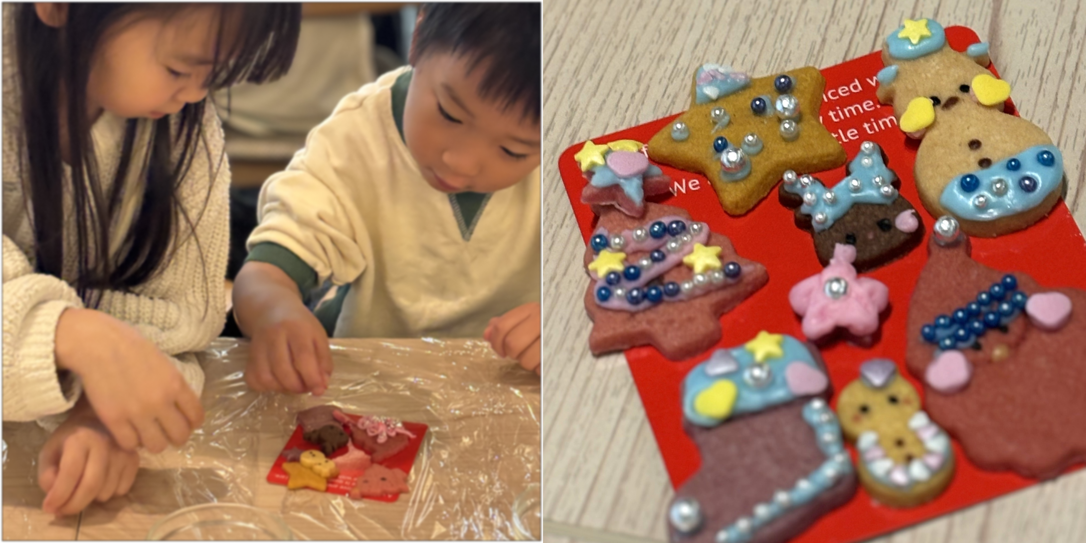お菓子の家づくりは事前予約で満員御礼となっており、当日キャンセルが出た場合のご案内となりますが、「おえかきクッキー」は当日参加もOK!