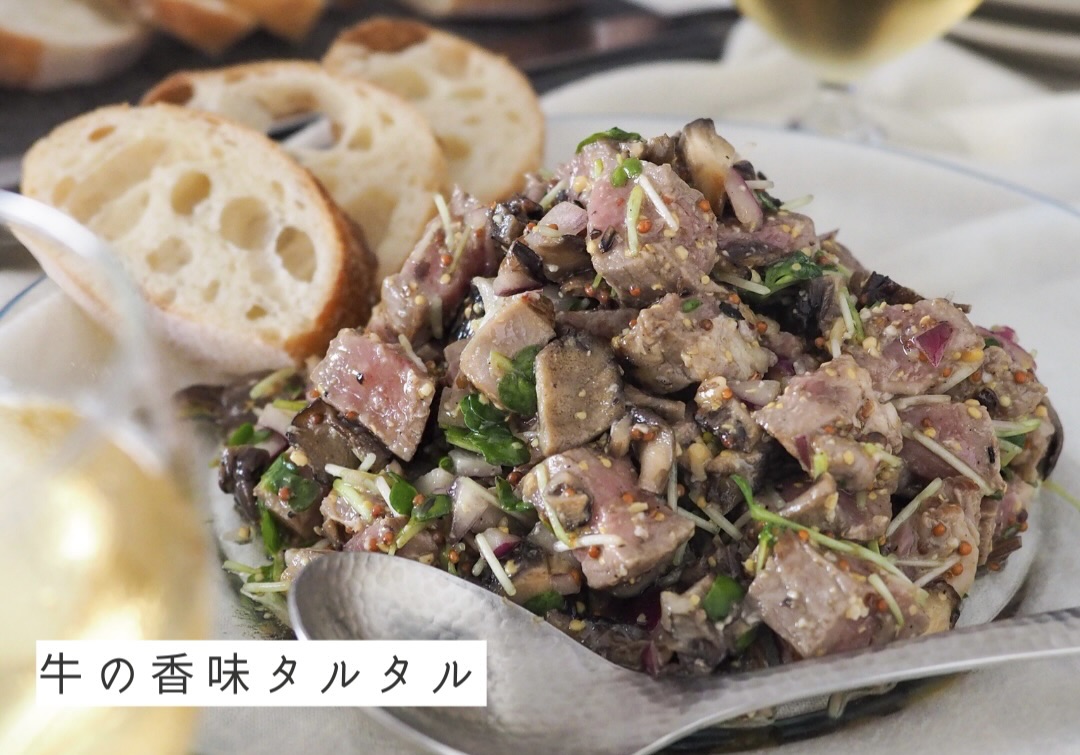 お手頃価格の時に購入した牛肉のストックがあれば、一気にご褒美タルタルに変身させちゃうこちらのレシピ。お肉のうま味をダイレクトに味わえます。