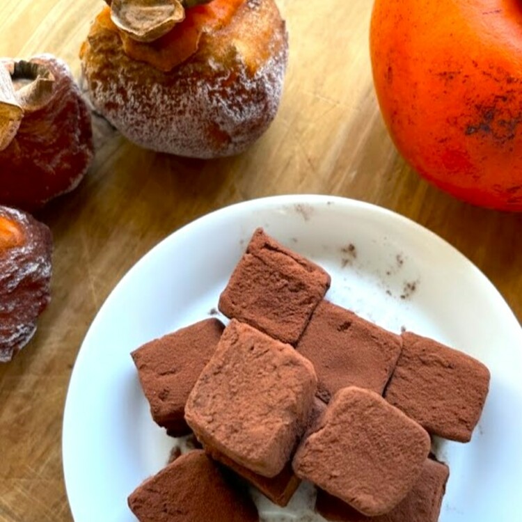 ねっとりとした干し柿の甘さと、チョコのほろ苦さが相まって、コーヒーにもよく合います。