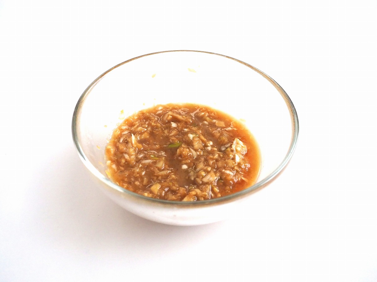 4. 長ネギと生姜を微塵切りにし、Aと合わせて香味野菜だれを作る。