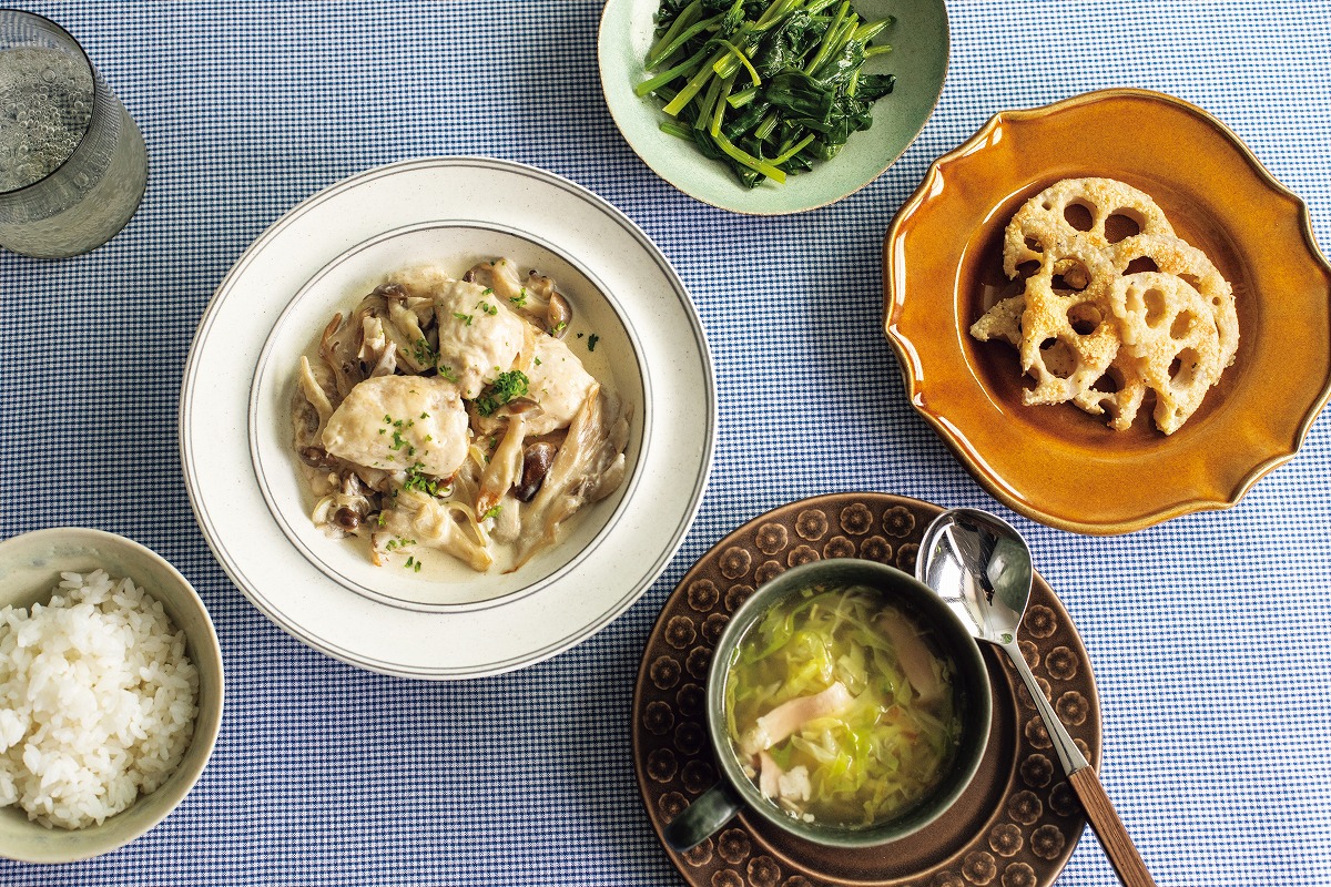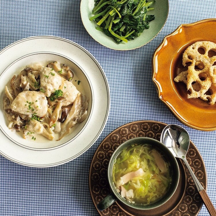 寒い時期はクリーム煮のような、こってりとした料理がおいしく感じられますよね。こちらの「鶏肉ときのこのクリーム煮」をメインにした献立はおいしいだけじゃなく、空気の乾燥による不調や便秘などのお悩みを改善したい人にもぴったりです。
