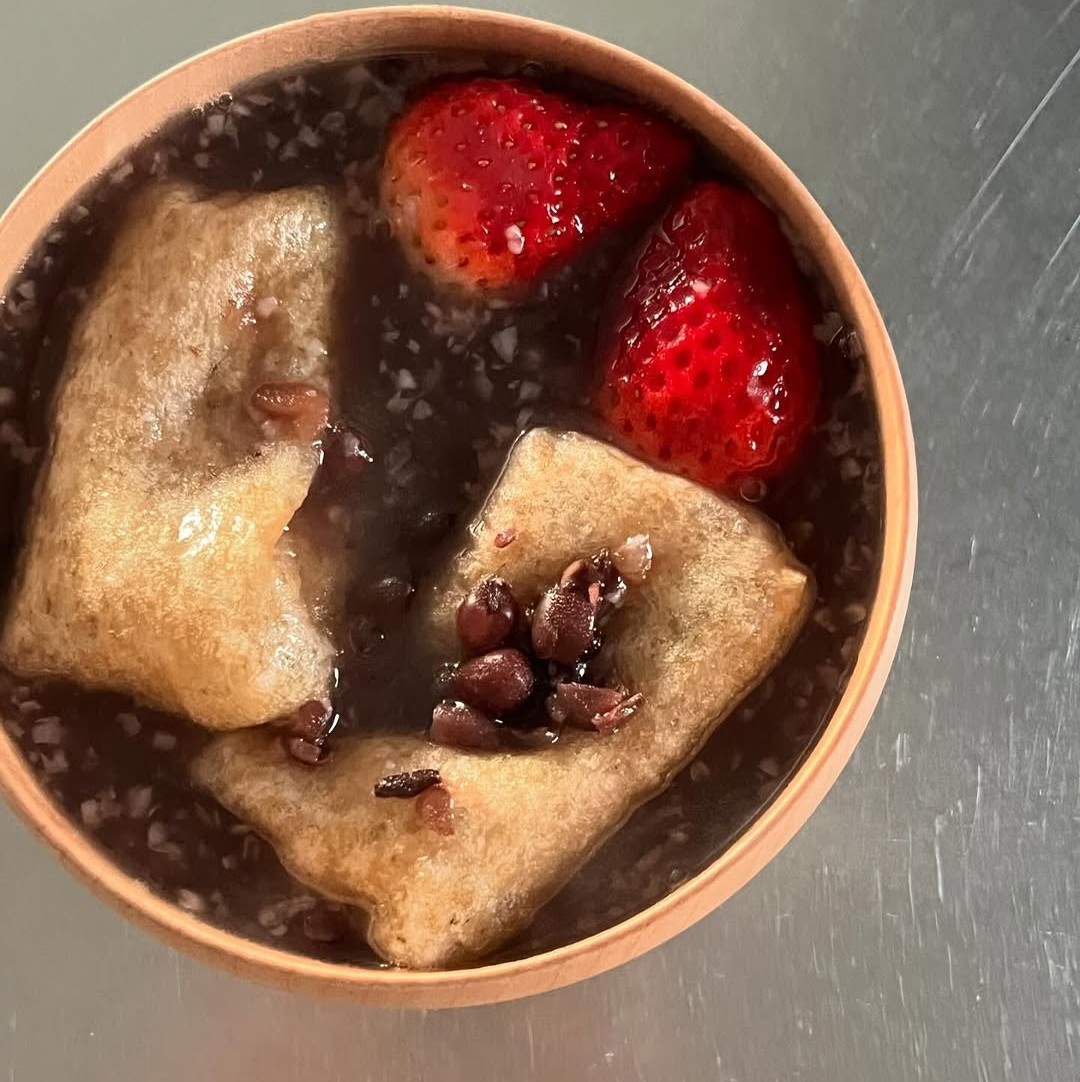 ▲玄米もち、黒米甘酒のおしるこ(齋藤菜々子さんのInstagramより)