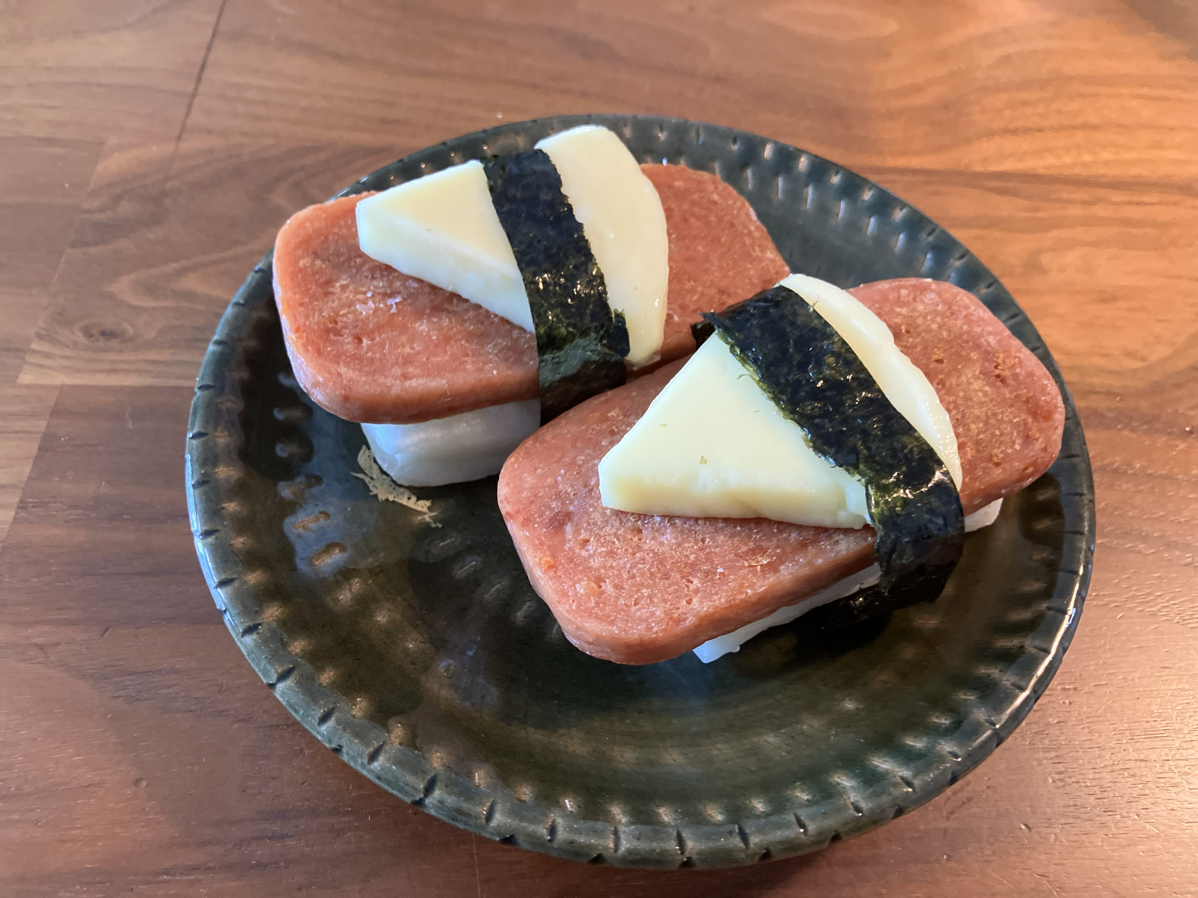 スパムを両面焼いたあとに6Pチーズをのせて温めるととろ~りチーズ食感が味わえますよ。おつまみにもおやつにもぴったりなので、ぜひ作ってみてくださいね♪