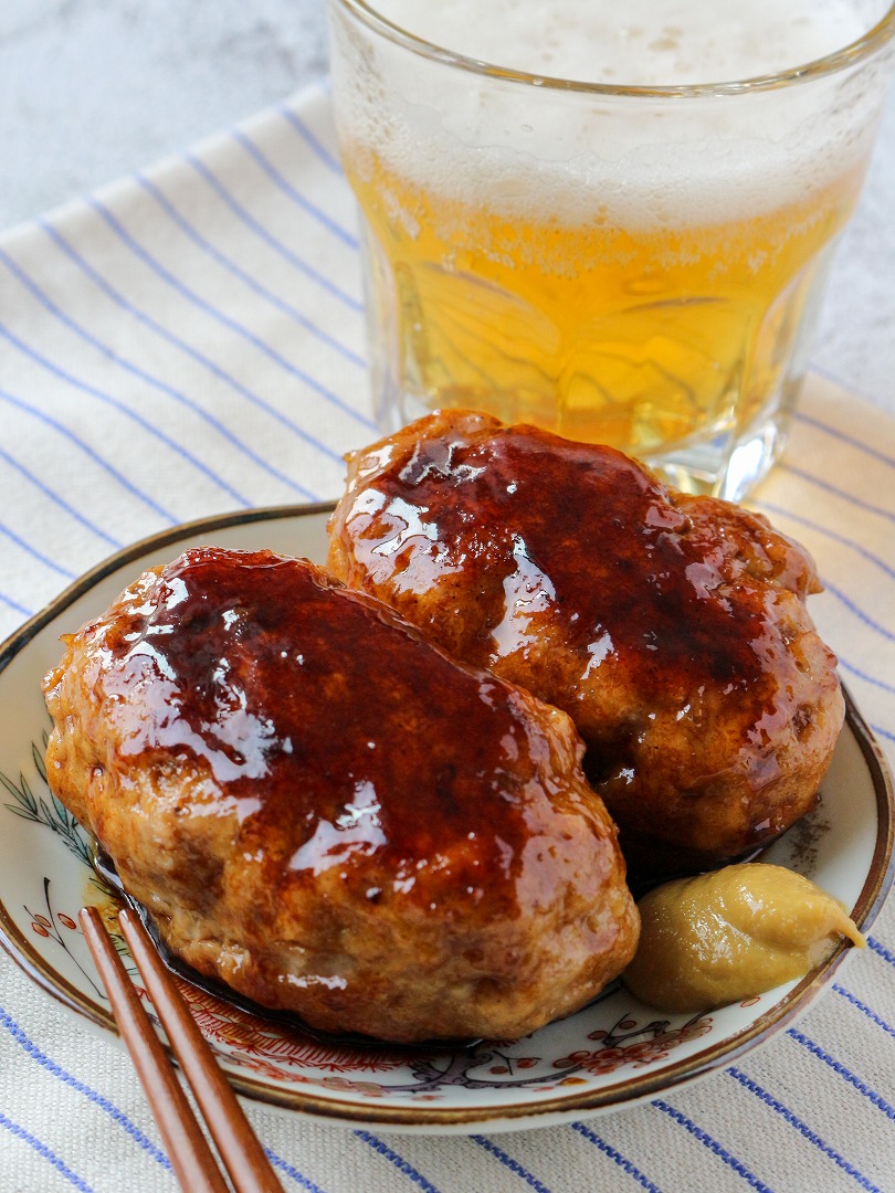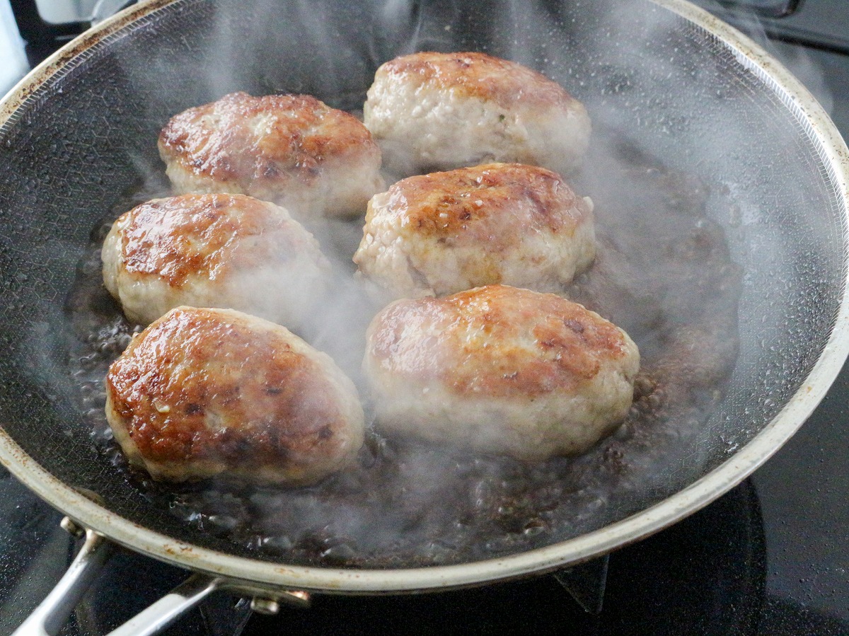 今回はお酒に合うように肉々しい食感に仕上げていますが、もっとやわらかい食感がお好きな方は肉ダネに加える水の量を増やしてみてください。