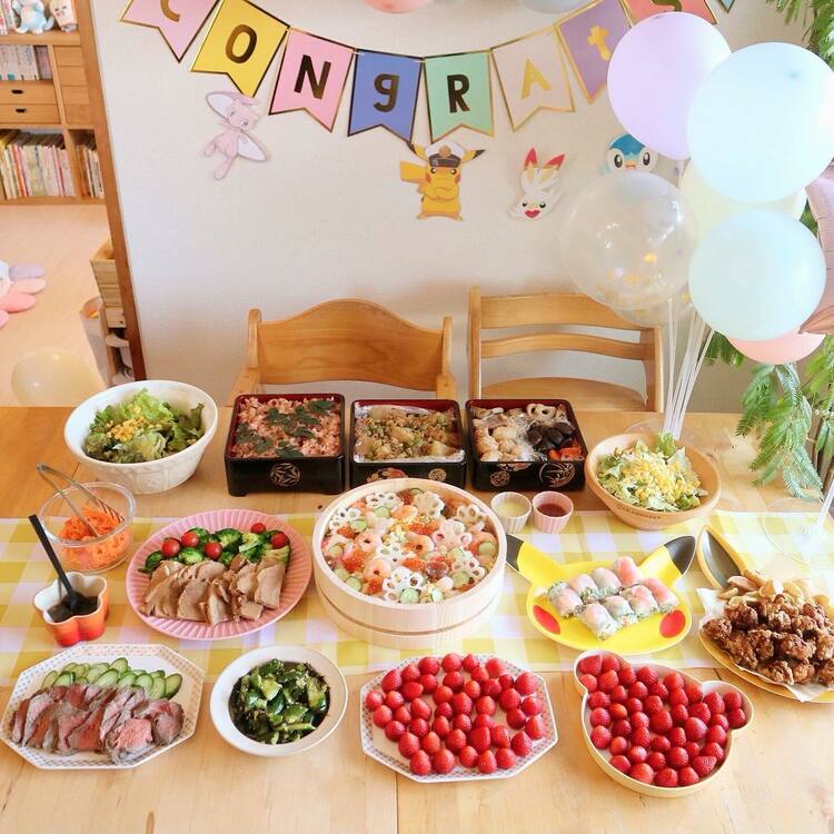 好きな具材を自由に楽しめるメニューや、春らしい彩りを意識した料理、手に取りやすいミニサイズのおかずなどを並べると、お祝いの雰囲気がぐっと盛り上がります。