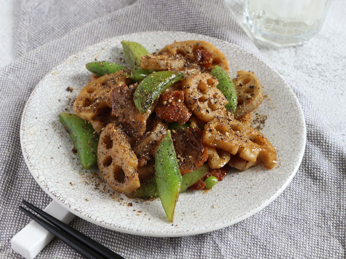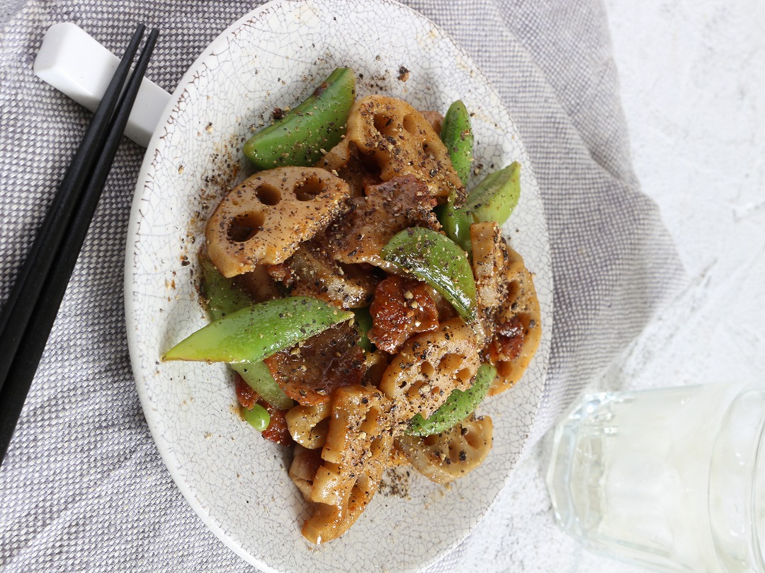 「豚バラとれんこんのW胡椒炒め」